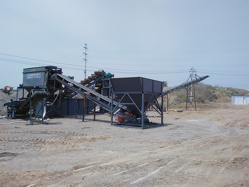 1、將石粉清洗設備、輸送機、喂料斗、滾筒篩分機等放置到合適的場地位置。